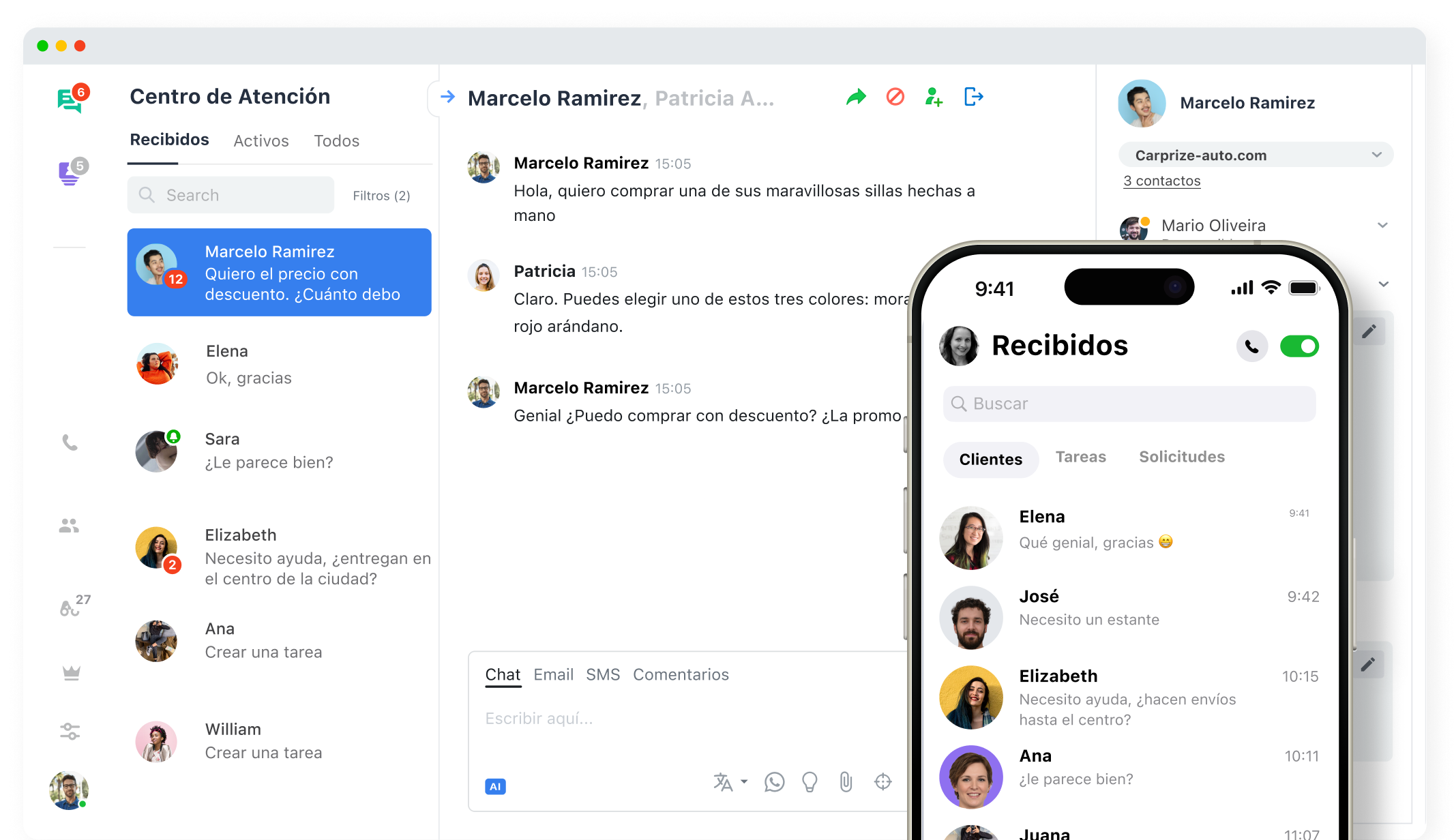Reúna todos los canales de contacto en un solo lugar: chat en vivo, redes sociales, mensajería instantánea y llamadas telefónicas. Interactúe con los clientes utilizando su canal preferido