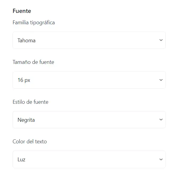 En la pestaña "Fuente" puede establecer el estilo, tipo, color y tamaño de la fuente.