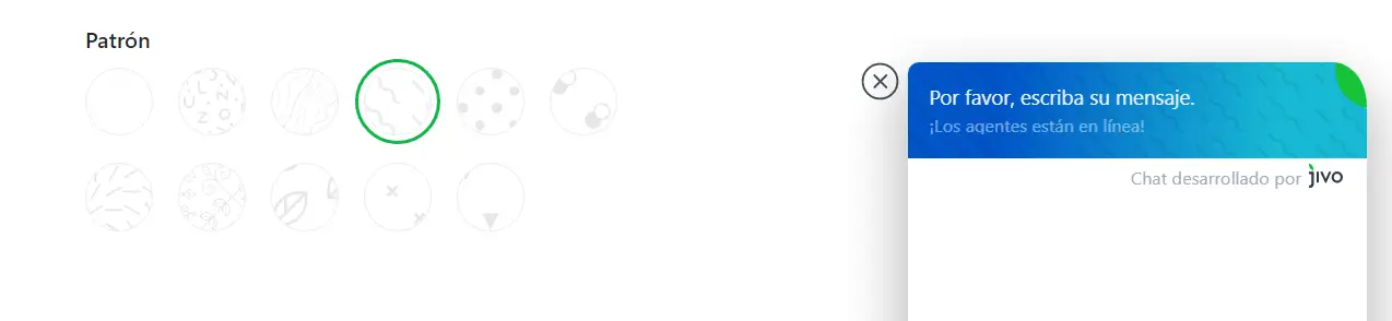 Puede agregar arte de textura al widget de chat seleccionando una de las opciones en esta sección: