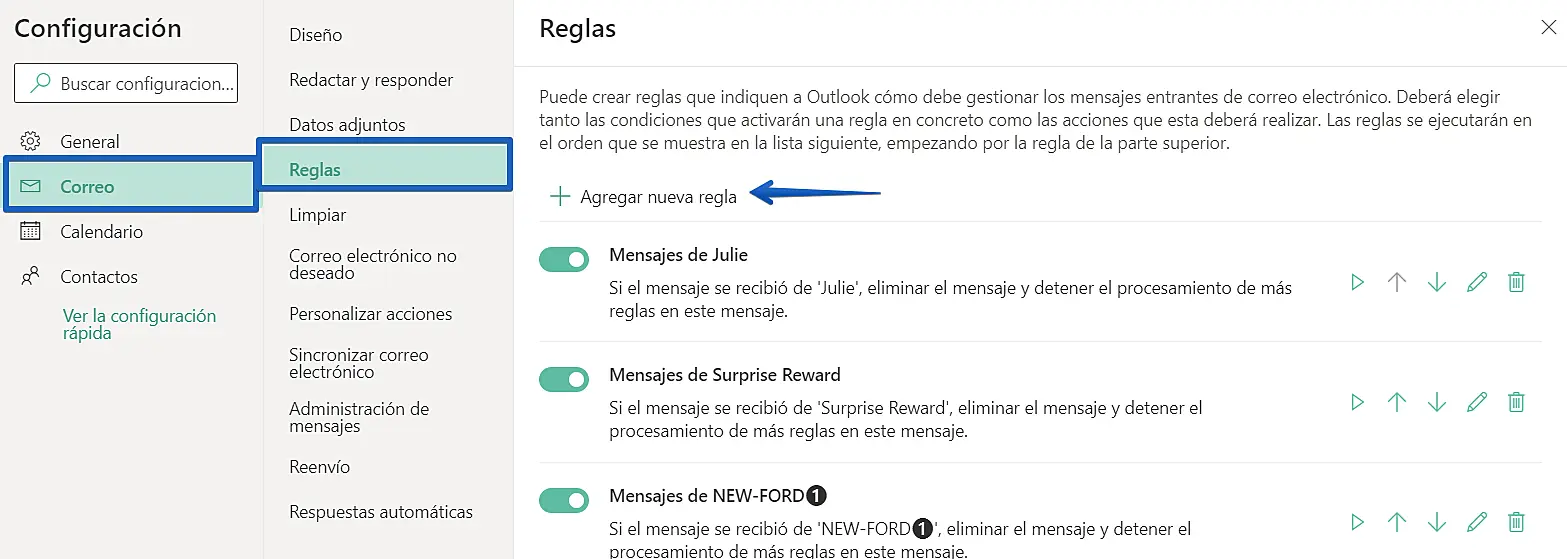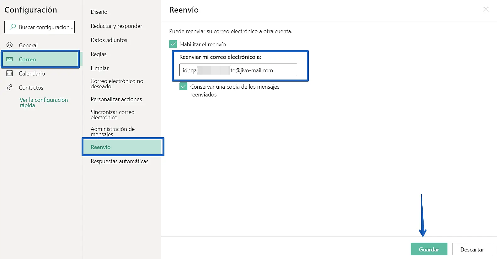 Outlook — configurar reenvio de correos