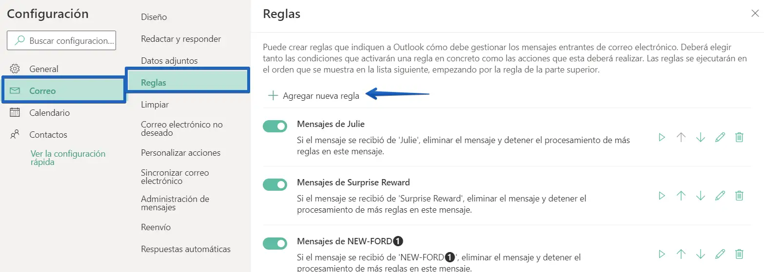 1. Para añadir filtros vaya al menú "reglas" y seleeccione "añadir nueva regla"
