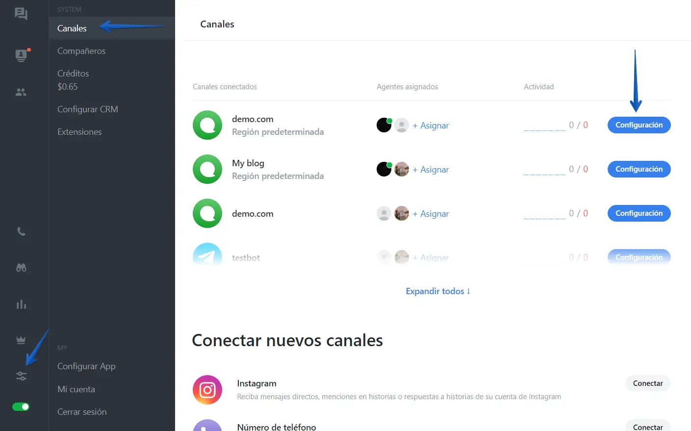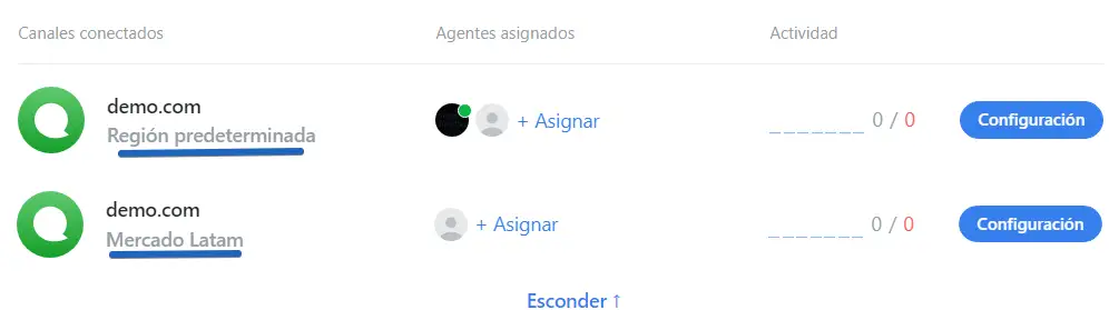 Esta opción abre canales en su cuenta para que pueda asignar agentes, configurar y tener estadisticas separadas.