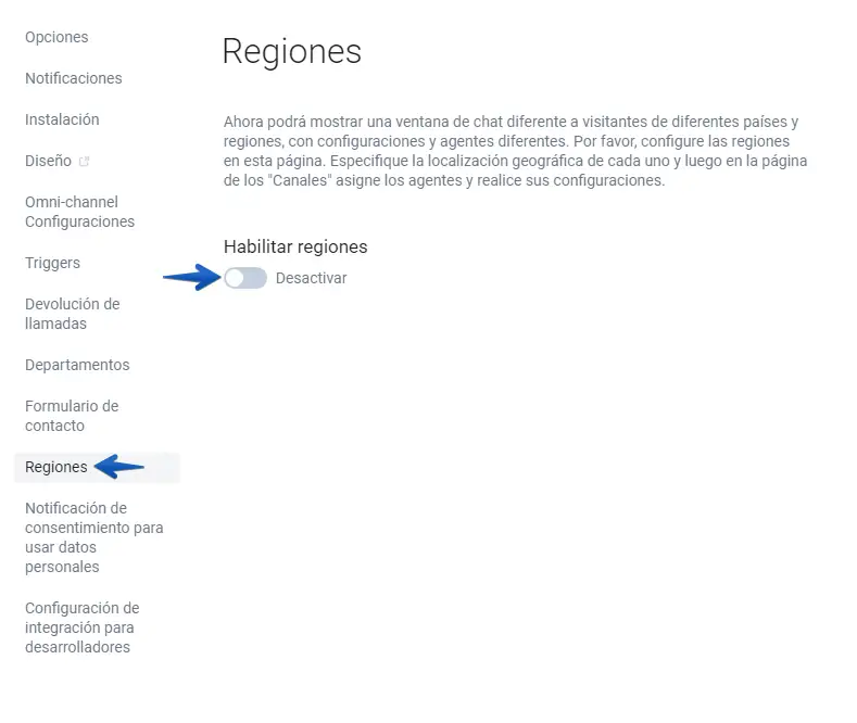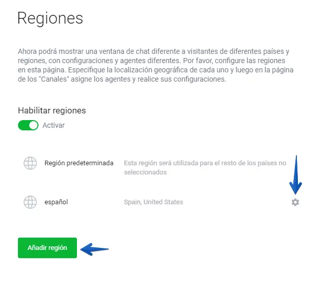 La función de Regiones le permite configurar un chat diferente para una región diferente.