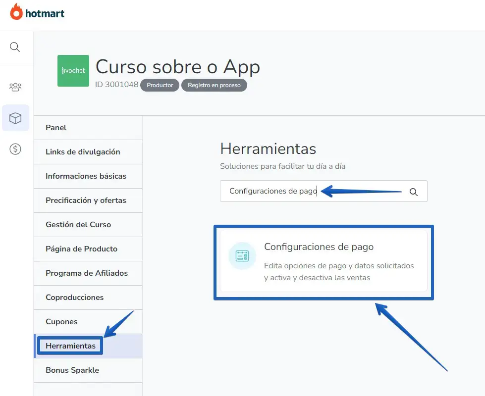 Para instalar JivoChat en el checkout de sus productos en la plataforma Hotmart y recibir mensajes de sus clientes, solo siga los siguientes pasos: