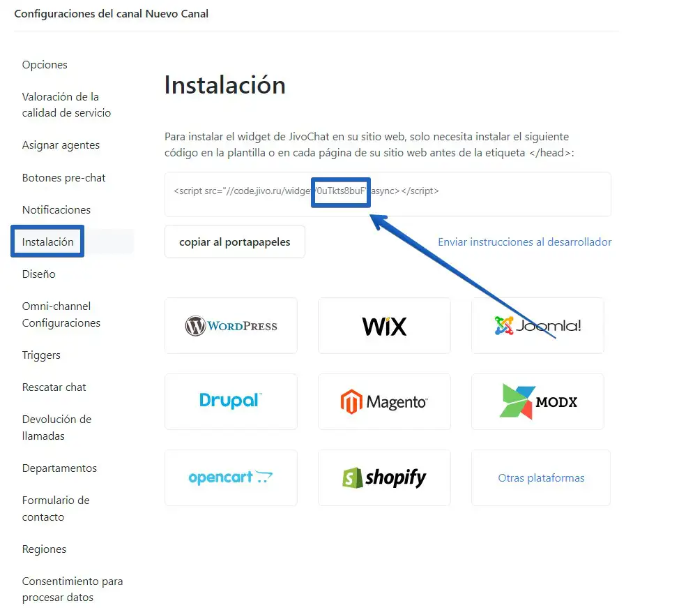 Paso 2: Busque y copie su chat widget_id