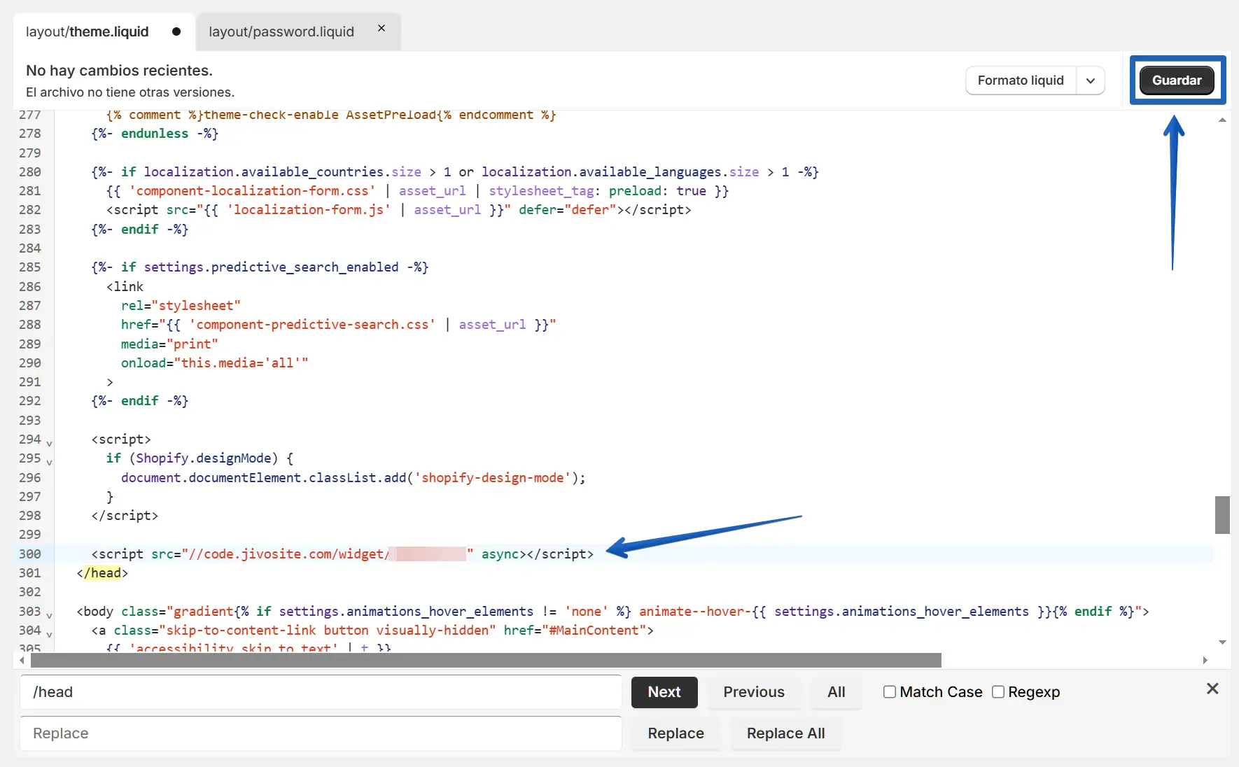 Para instalar el código de JivoChat en su sitio de Shopify, siga estos pasos: