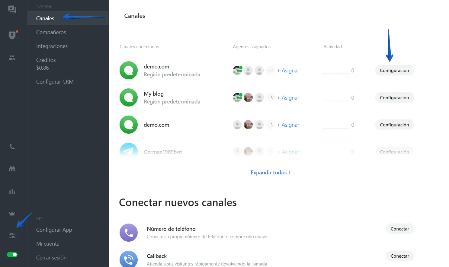 - A continuación vaya a los Ajustes-> Canales -> Configuraciones del canal.