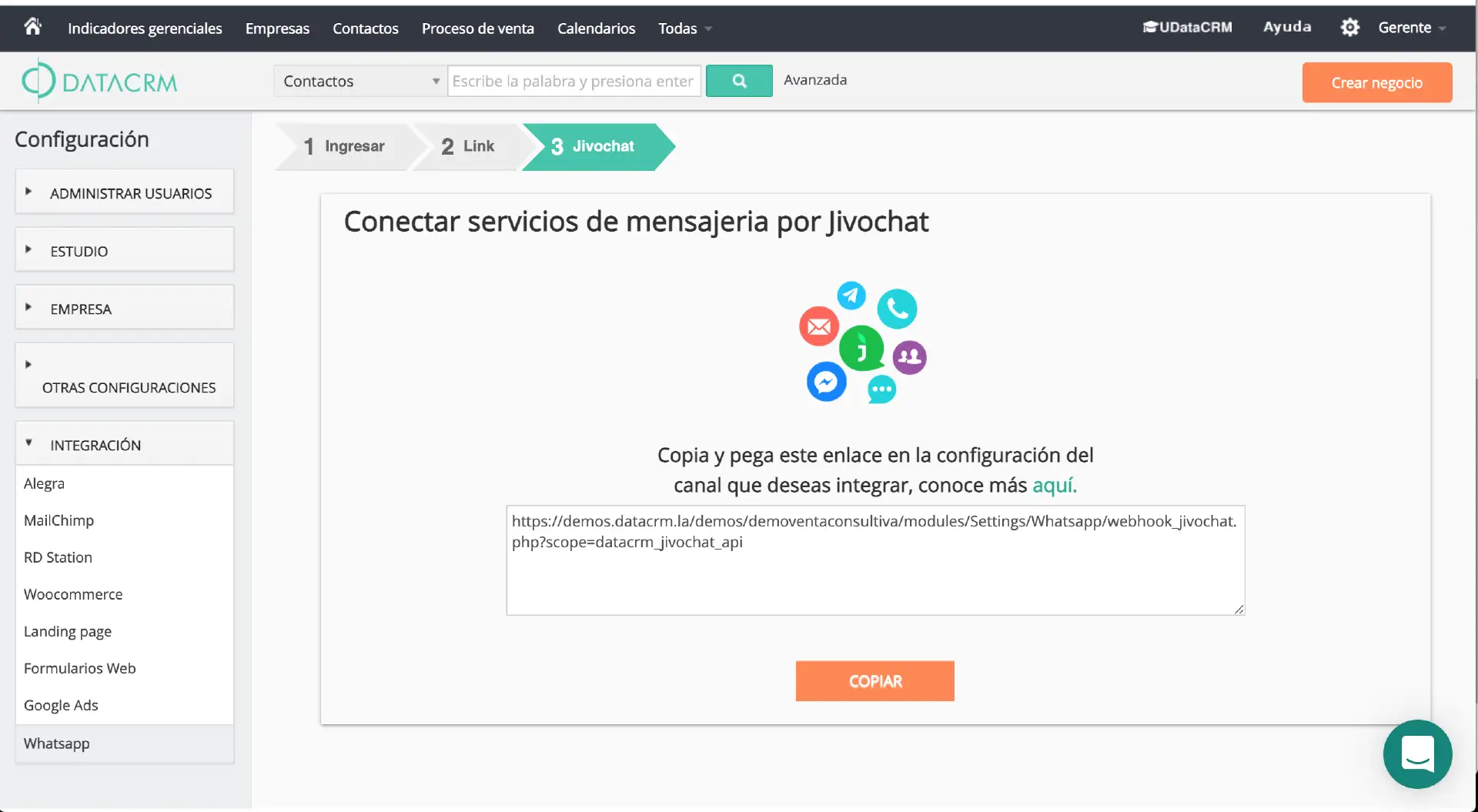 VIPPROEn este tutorial les mostramos cómo integrar su cuenta de JivoChat con DataCrm en tan solo unos pocos pasos.